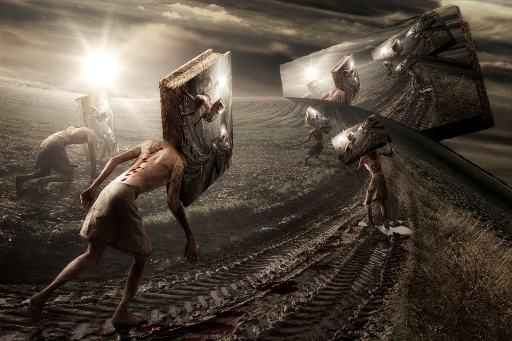 Obviously, I am not into realistic nor documentary photography. While I do love looking at such photos, I don’t feel the need to start taking some myself. However, what I do feel is a need to create. I am not sure I have a photographic vision as such, but I do have an overall vision of life, just like everyone. This vision has many faces: it can be opinions about cultural or political topics, personal reflection about some subject, my own doubts, a situation I see in the street, a book, a movie, a random sentence I hear somewhere, anything that crosses my mind really, that I want to express. From there, I try to translate my feelings into a concept, which I try to explain through an image. In the end, most of my creations are in fact nothing else than expressions of my thoughts.