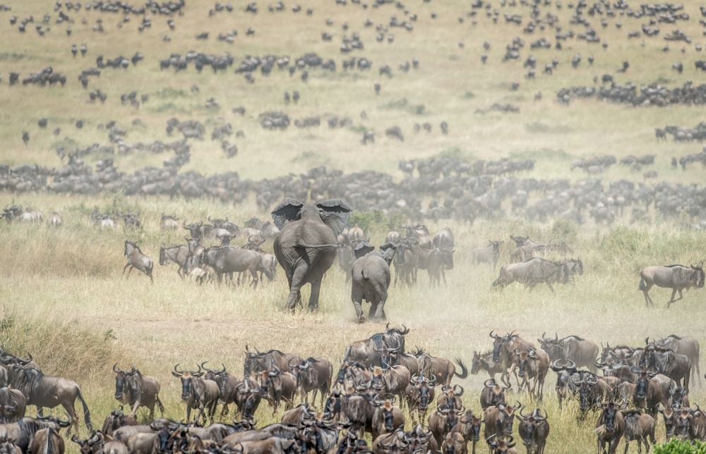 We go on safari during the “great wildebeest migration” when 1.5 million animals migrate from Tanzania up into Kenya. This is considered the greatest wildlife show on earth. The animals ford the rivers and fight to survive the onslaught of the Nile crocodiles and the awaiting jaws of the lion prides on the other side of the rivers.