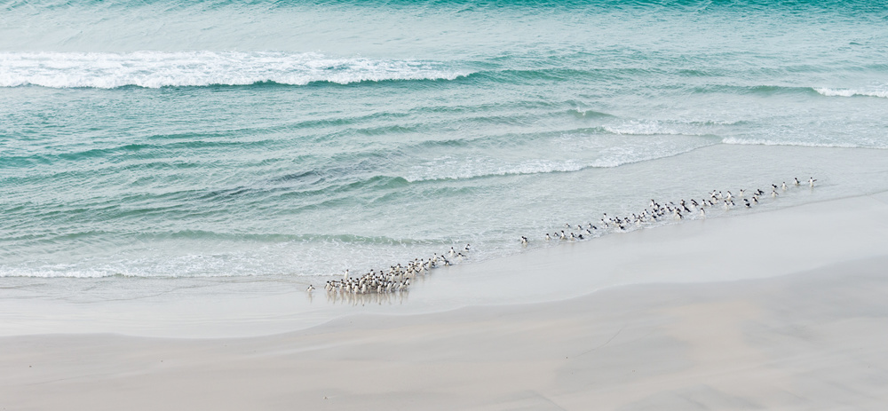 A wonderful image that combines the photograph's subjects in a simple story, featuring soft lighting, an inviting color palette and a good use of visual presentation by cropping the image to more of a panorama format, allowing the image to work both as landscape photograph and a wildlife photograph. Absolutely wonderful!