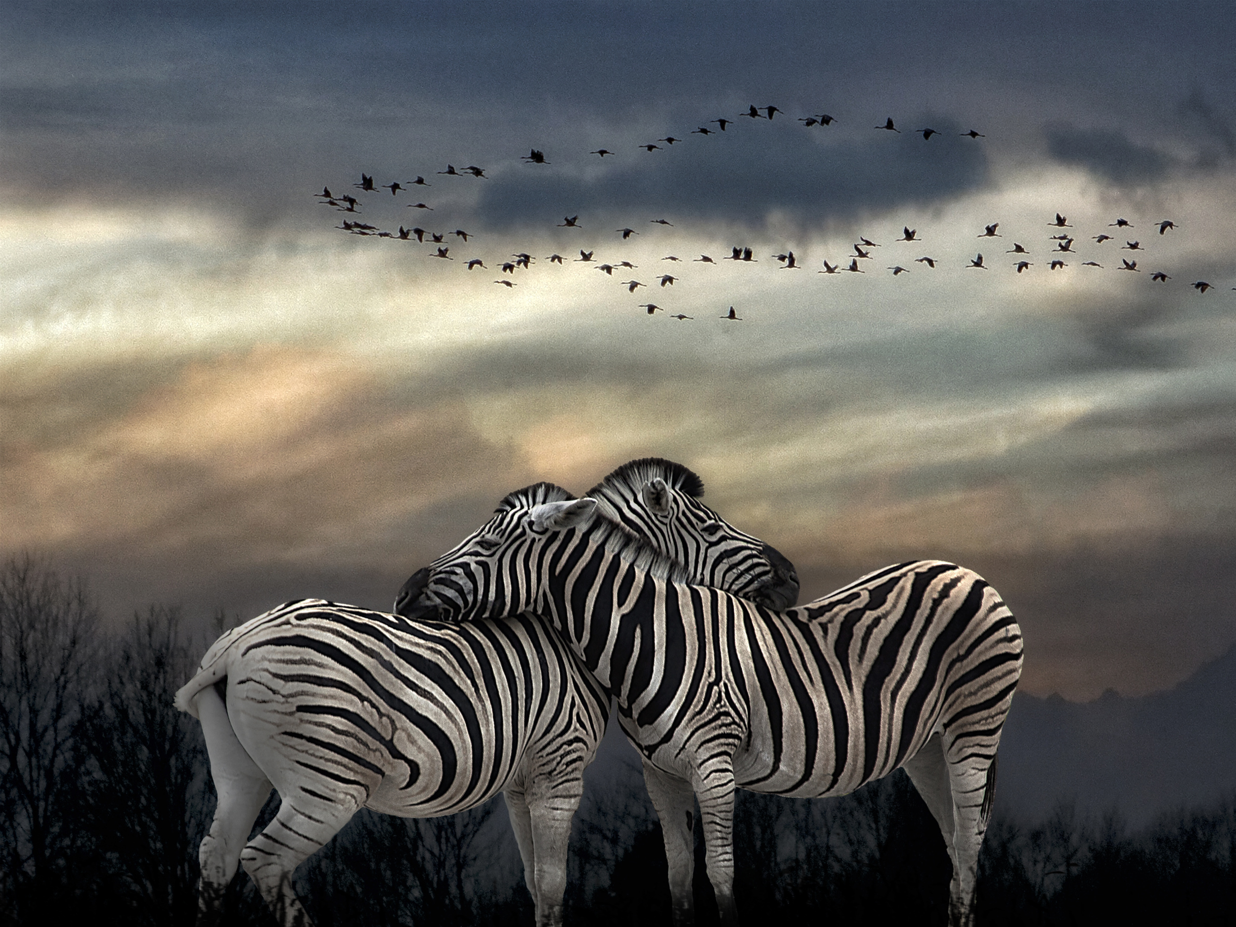 'Zebras at sunset'